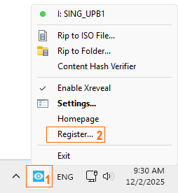 - Right-click the Xreveal icon in the system tray at the bottom right corner of the Windows desktop, then click 'Register'.